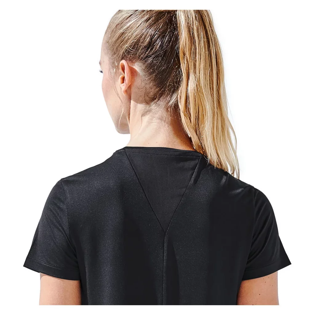 تیشرت مشکی زنانه از برند CRIVIT آلمانی،مناسب برای رانینگ و کلیه ی فعالیت های ورزشی است. در قسمت پشت گردن بصورت هفتی تور کار شده است که علاوه بر تنفس پذیری بیشتر ،تیشرت را از حالت ساده گی خارج کرده است. دارای قابلیت خشک و خنک نگه داشتن بدن در زمان فعالیت است.