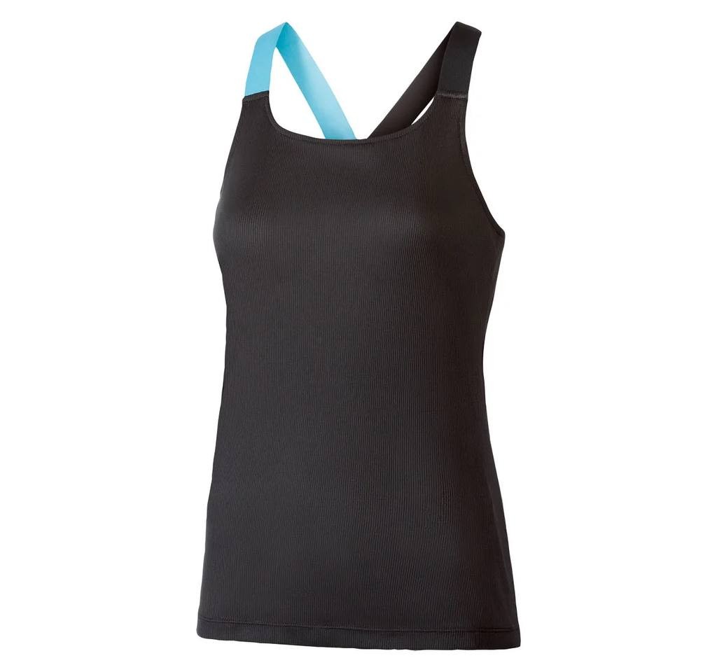 تاپ ورزشی زنانه مشکی از برند CRIVIT آلمانی، مناسب برای باشگاه و کلیه ی فعالیت های ورزشی است. دارای دو بند کشی است. دارای آزادی عمل در زمان انجام فعالیت ورزشی است. دارای قابلیت خشک و خنک نگه داشتن بدن در زمان انجام فعالیت است. دارای استاندار OEKO-TEX است.دارای وزن بسیار سبک است.دارای بند کشی آبی رنگ است. دارای پارچه ی کبریتی است.