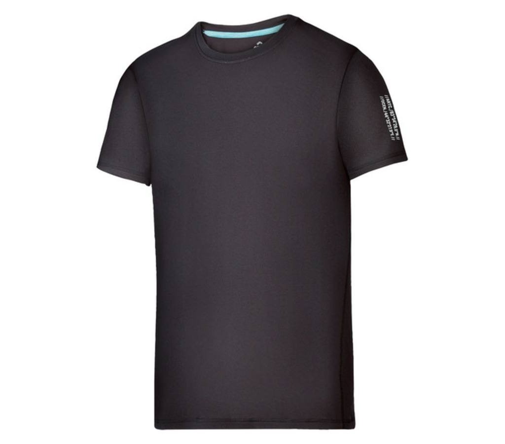 تیشرت مشکی سوزنی با وزنی سبک از برند CRIVIT آلمانی، مناسب برای رانینگ و کلیه ی فعالیت های ورزشی سخت و پر فشار است. دارای وزنی سبک است . دارای قابلیت خشک و خنک نگه داشتن بدن در زمان فعالیت ورزشی است.قسمت آستین سمت چپ دارای چاپ است.