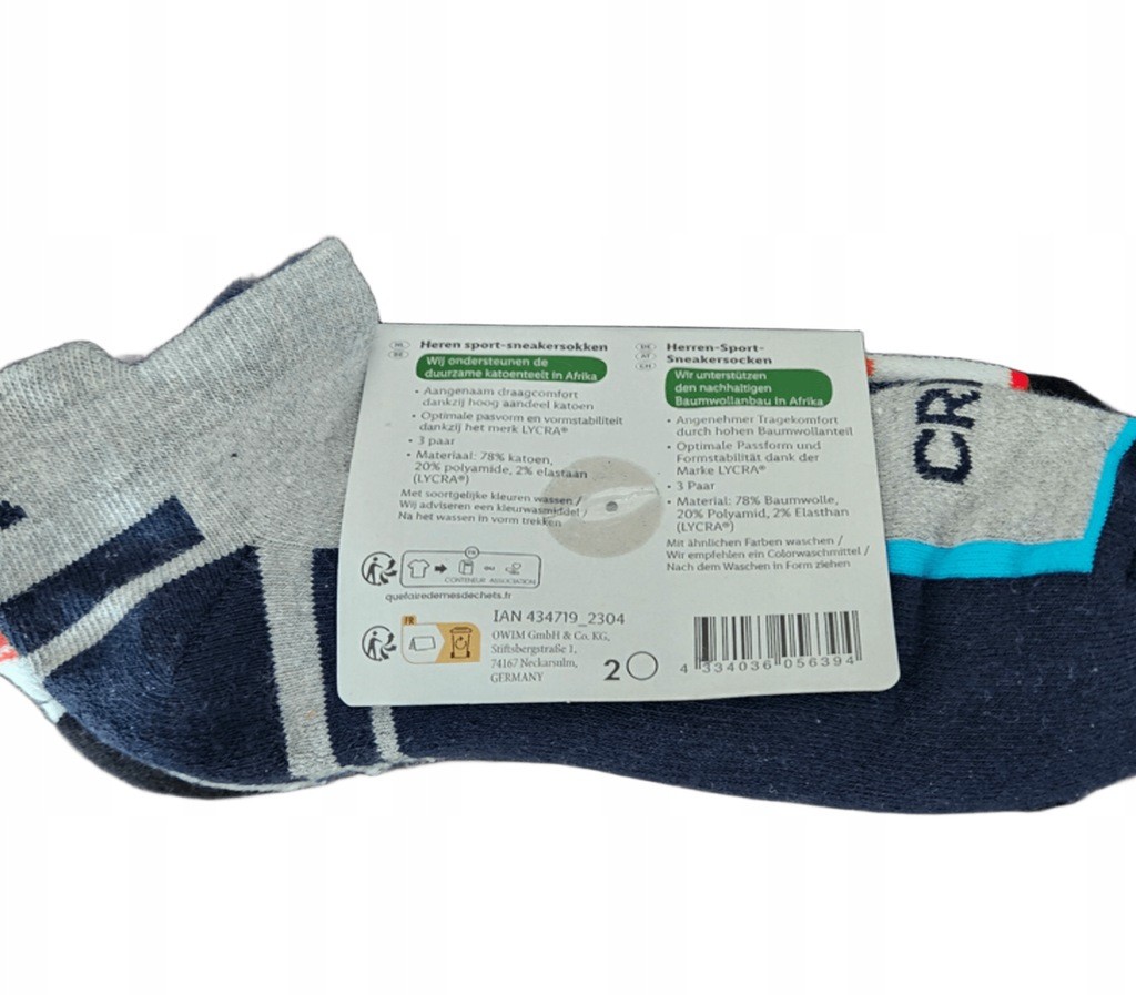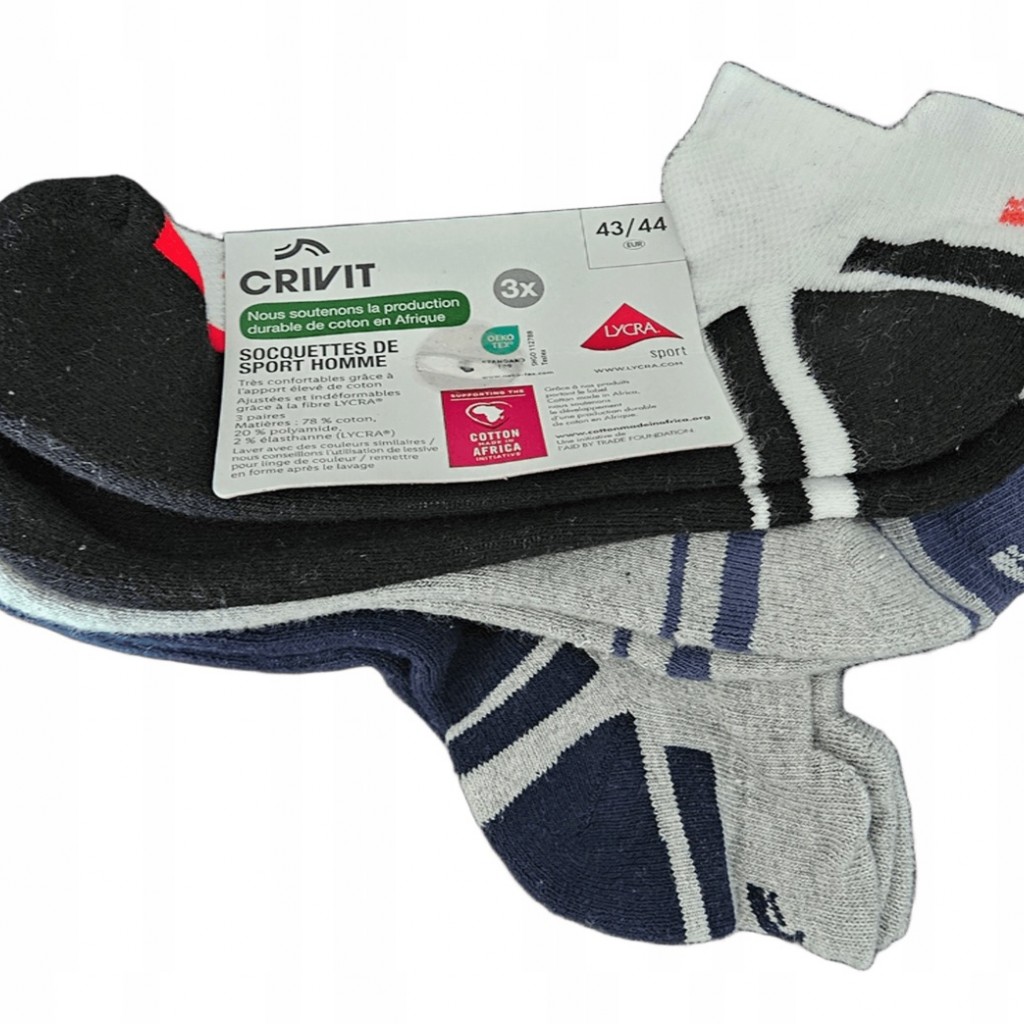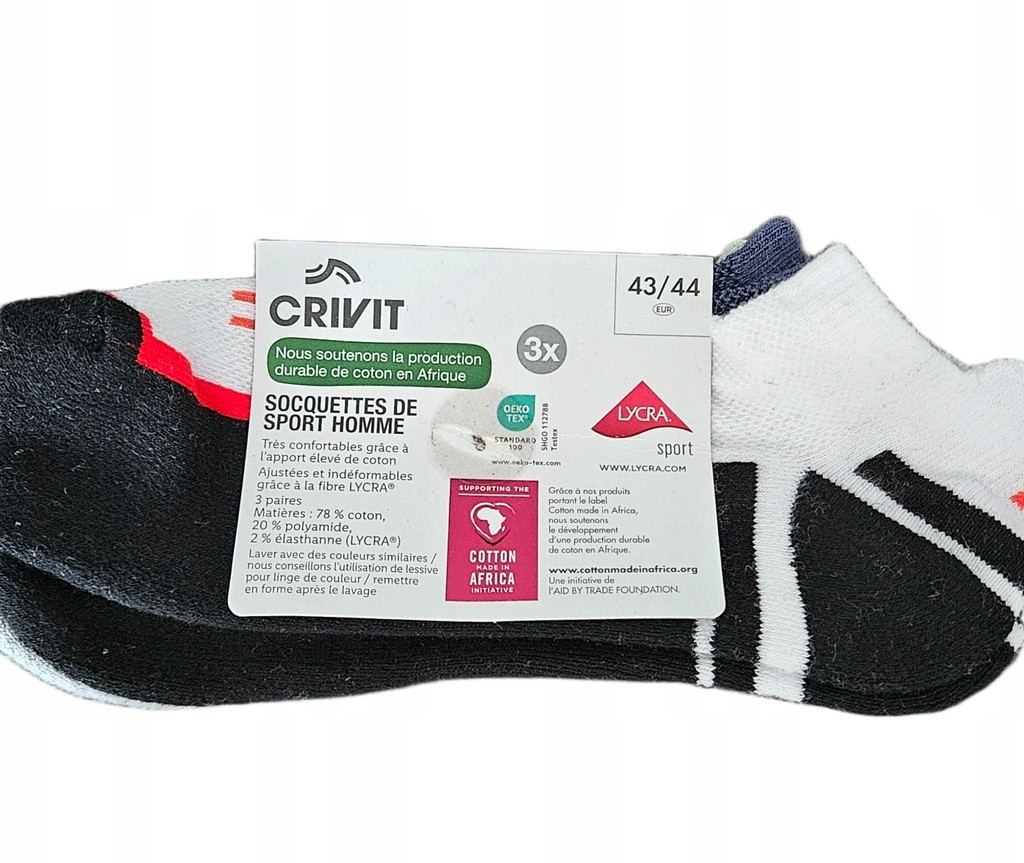 پک سه جفتی جوراب CRIVIT، ساخته شده از پنبه آفریقا است . این محصول با کف حوله ای بالشتکی از اصطحکاک جلوگیری کرده و مانع سایش و تاول پا خواهد شد. به دلیل حوله ای بودن کف محصول ، برای رانینگ و ورزش های راکتی مانند تنیس و بدمینتون نیز مناسب است.این محصول برای فعالیت های روزانه و کلیه ی فعالیت های ورزشی نیز به خاطر تنفس پذیری مناسب است. این پک سه جفتی را در سه رنگ متفاوت میتوانید از مون بلان شاپ تهیه کنید.