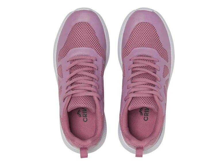 کتانی ورزشی زنانه از برند CRIVIT محصول آلمان مناسب برای پیاده روی های طولانی و دویدن و کلیه ی فعالیت های ورزشی است.این محصول با رویه ی مشبک با قابلیت تنفس پذیری و دارای آستر پارچه ای برای راحتی بیشتر است. با فناوری STROBEL،انعطاف پذیری کم نظیر و استثنائی بهمراه دارد.این کتانی با تناسب کامل که بر اساس شکل و آناتومی طراحی شده است که به شکل یکپارچه رویه با کفی دوخته شده است.محصول دارای زبانه ای بسیار نرم و لطیف که حس راحتی بسیاری را انتقال می دهد.دارای کفی فوق العاده سبک و انعطاف پدیذر با تکنولوژی EVA است.جنس رویه ی کتانی از پلی استر و مشبک PU بدون DMFA است و جنس کفی و آستر از پلی استر مشبک و جنس زیره EVA است.